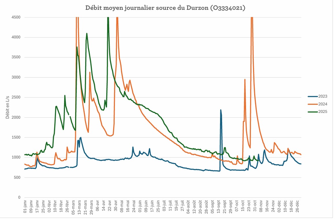 Le Parc Naturel Régional des Grands Causses souligne un niveau particulièrement bas à la source du Durzon