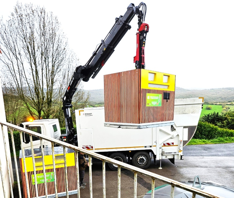 Photo: vue de l’enlèvement d’un container sur un autre site