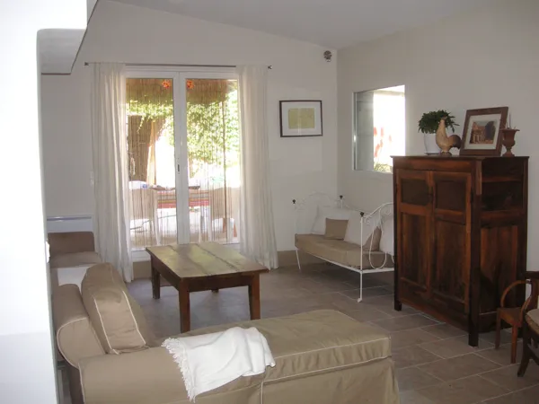 La maison se compose d’ une grande entrée, une salle à manger, une cuisine équipée ainsi qu’ un salon avec TV, s’ouvrant sur une terrasse et un jardin autour desquels 3 dépendances vous proposent jusqu’ à 5 chambres complétement indépendantes.